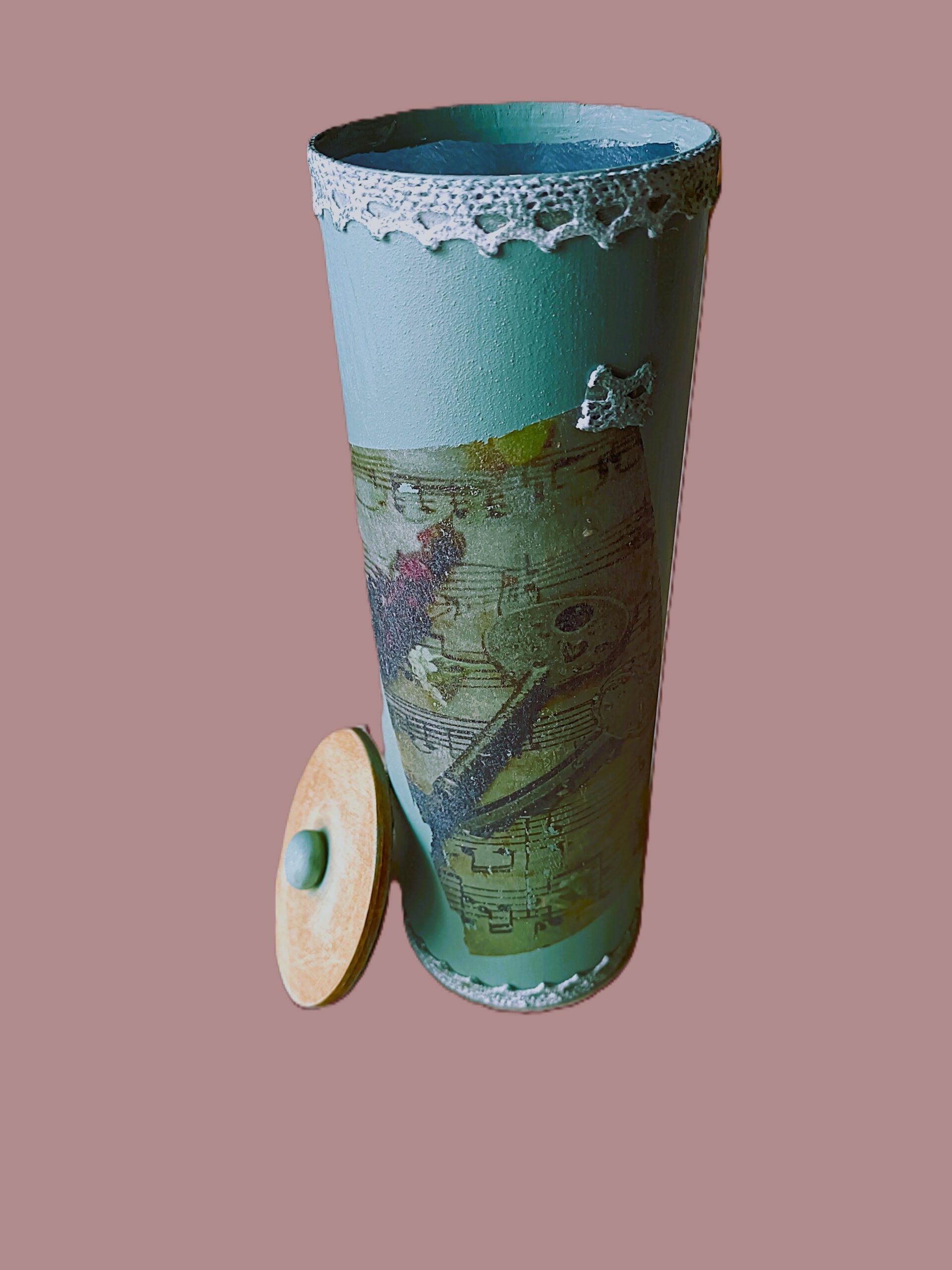 Cette boîte de rangement rénovée allie originalité et praticité. Remise au goût du jour avec une touche vintage et moderne, elle a été soigneusement peinte à la main et décorée d’un visuel rétro.