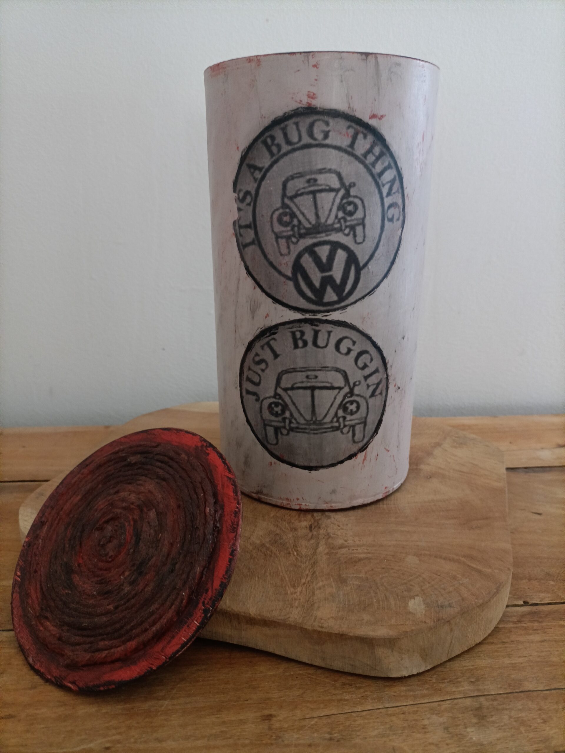 Cette Boite de Rangement rénovée pour les Amoureux de l’automobile Volkswagen, allie originalité et praticité. Remise au goût du jour avec une touche vintage et moderne, elle a été soigneusement peinte à la main et décorée d’un visuel rétro.