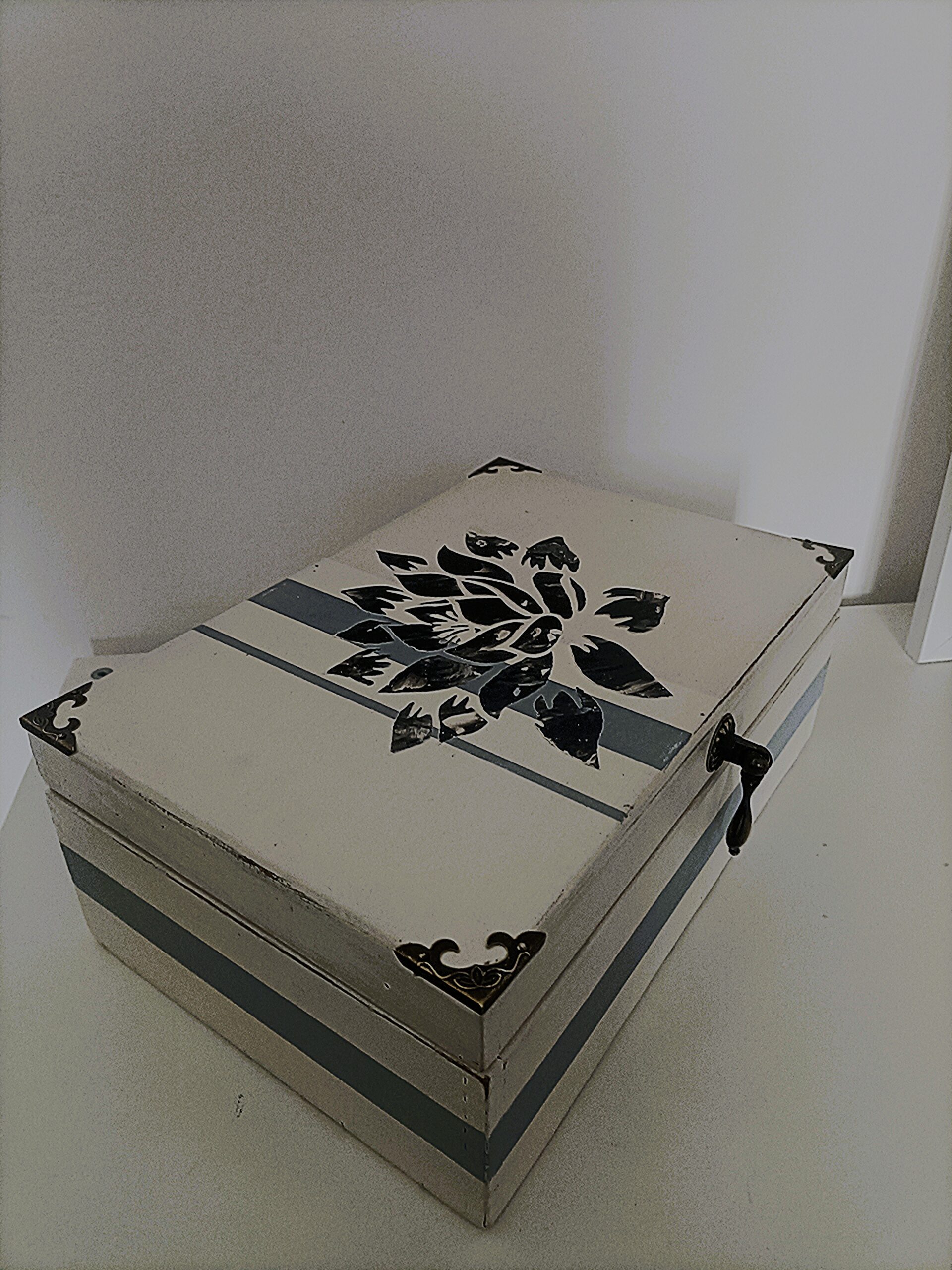 Cette boite de rangement décorative en bois et une pièce unique, création artisanal.