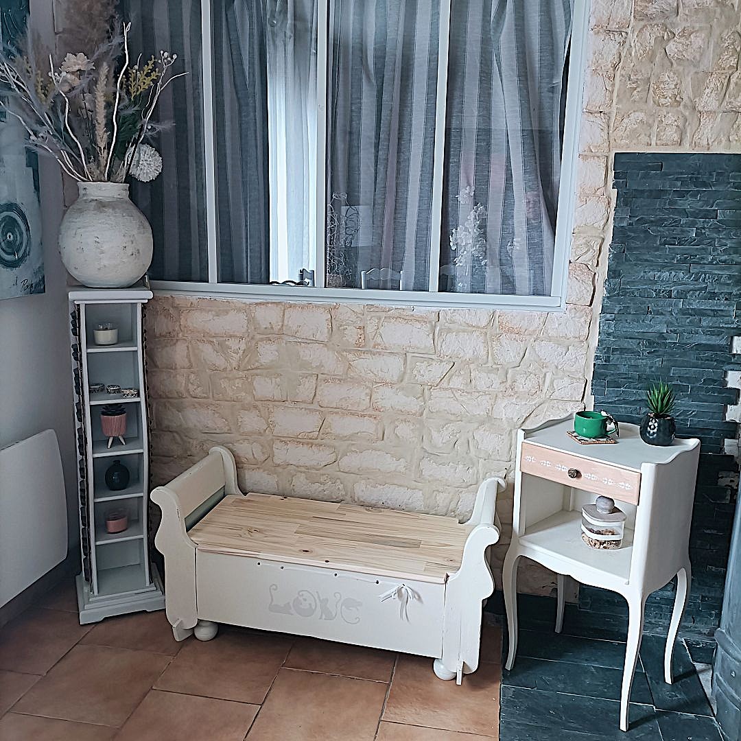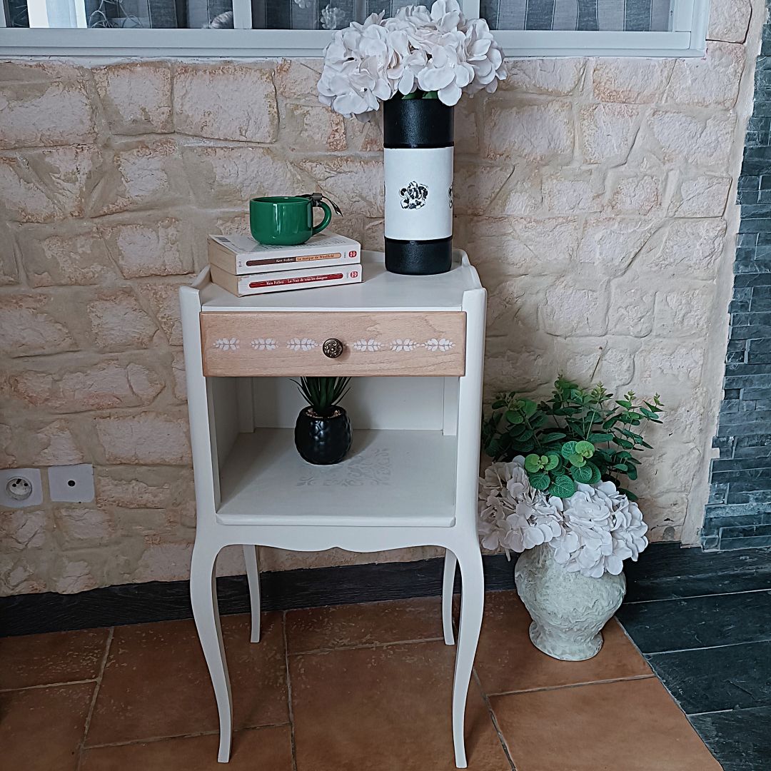 Petit meuble restauré avec soin dans un style de charme et campagne chic.