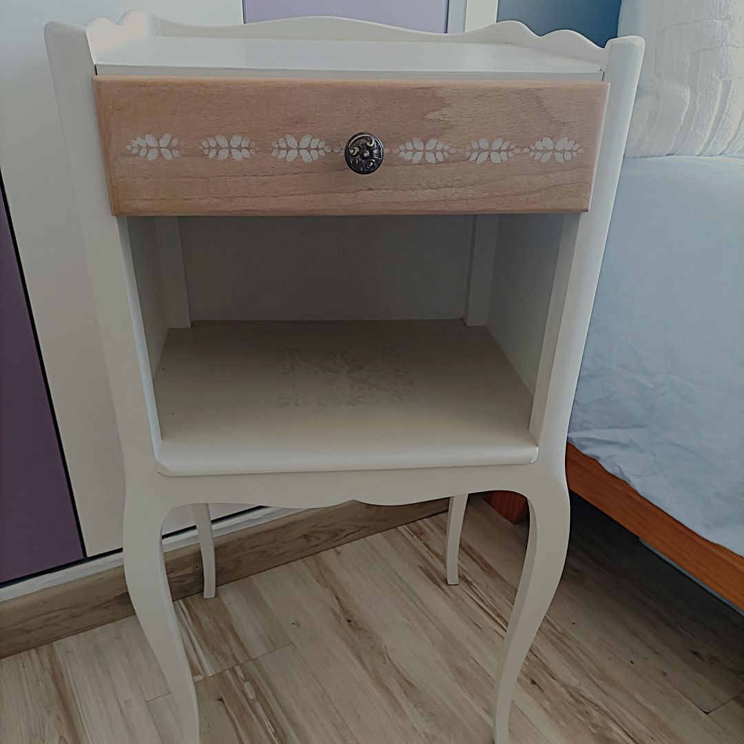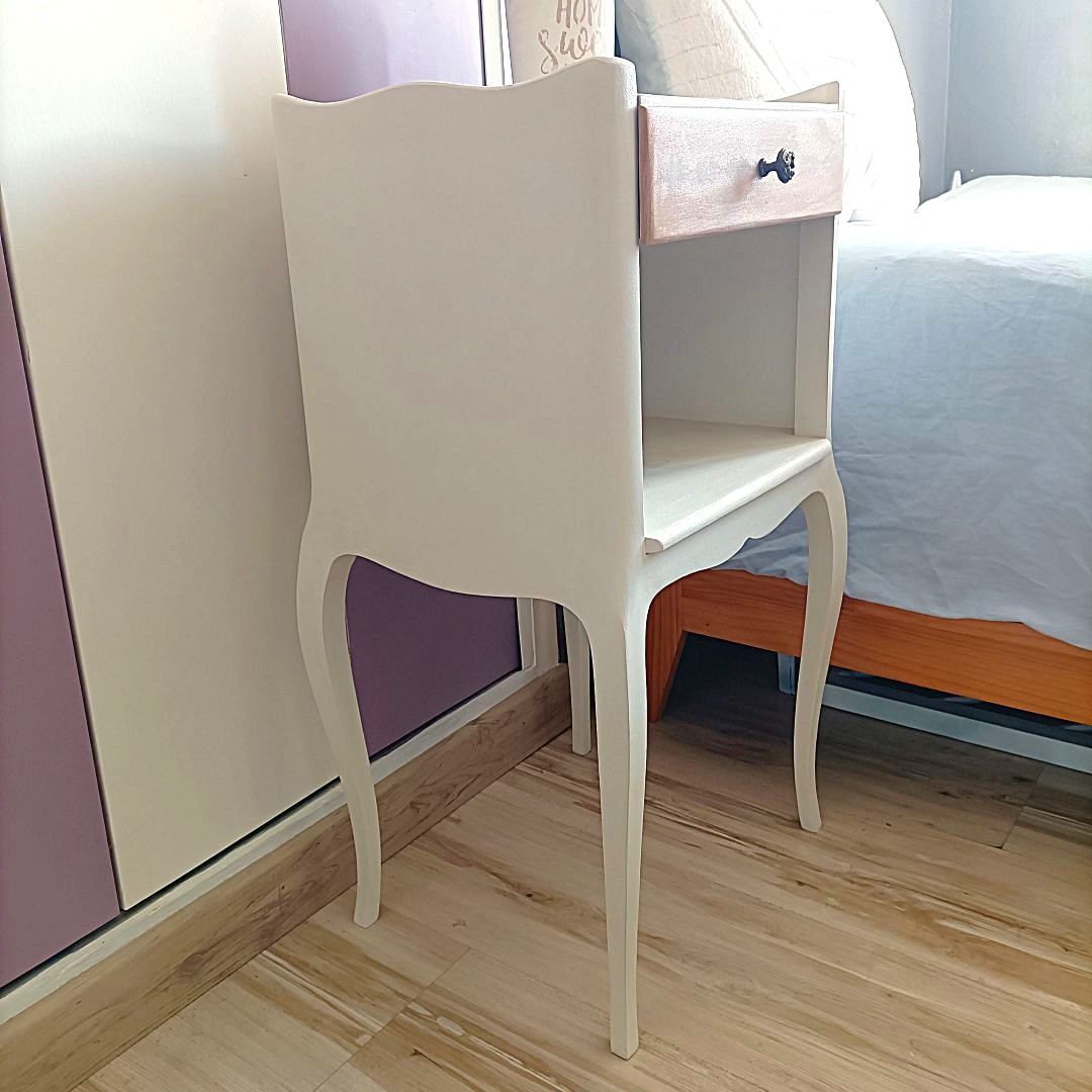 Chevet séduit par ses lignes élégantes, ses pieds galbée et son tiroir pratique, idéal pour ranger vos essentiels du quotidien. Son style doux et intemporel s’intègre parfaitement dans une décoration charme, campagne chic ou romantique.