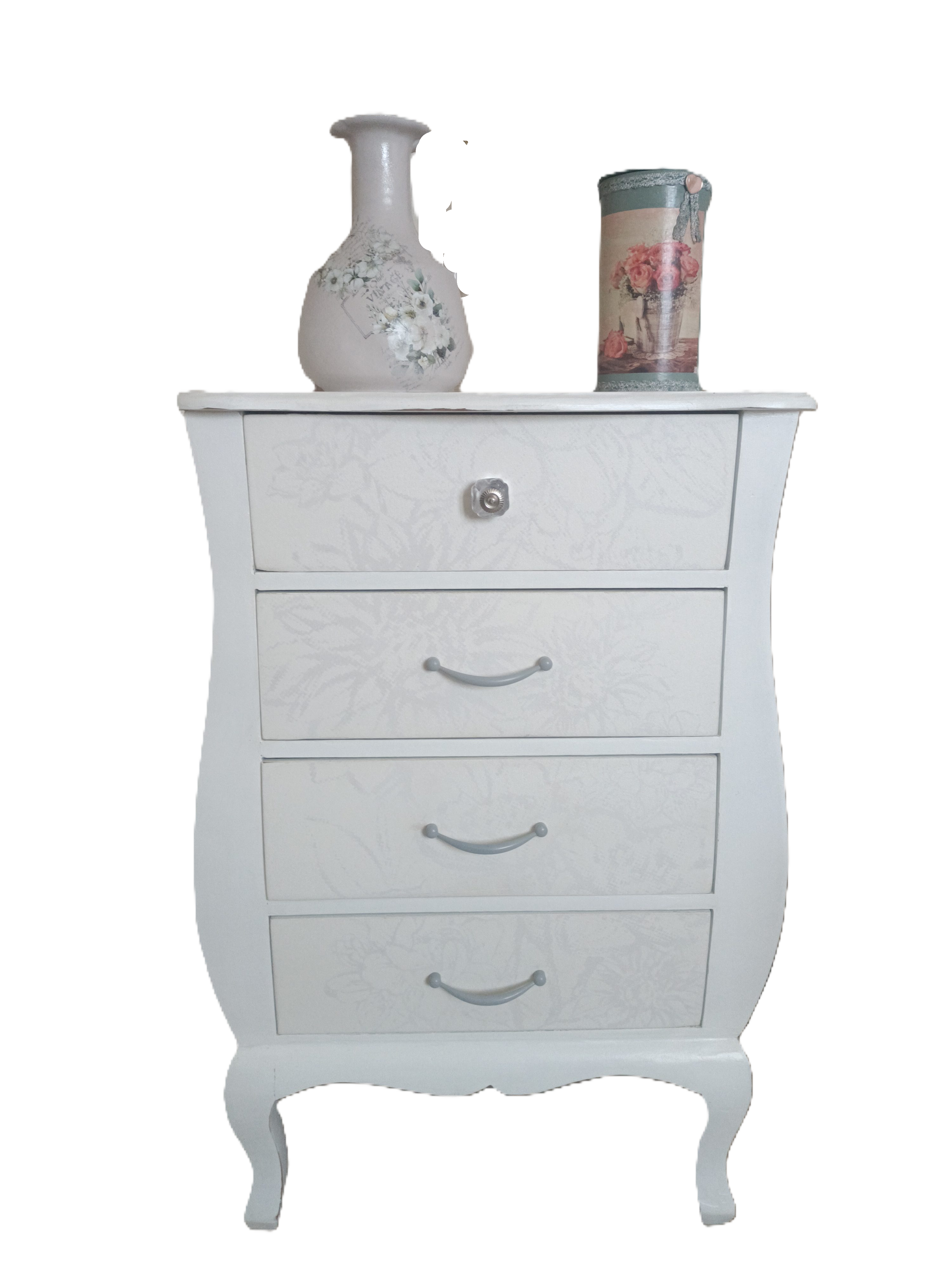 Chiffonnier / Commode 4 tiroirs blanc bois – Shabby Chic et Romantique – Réf M250010 Vendu