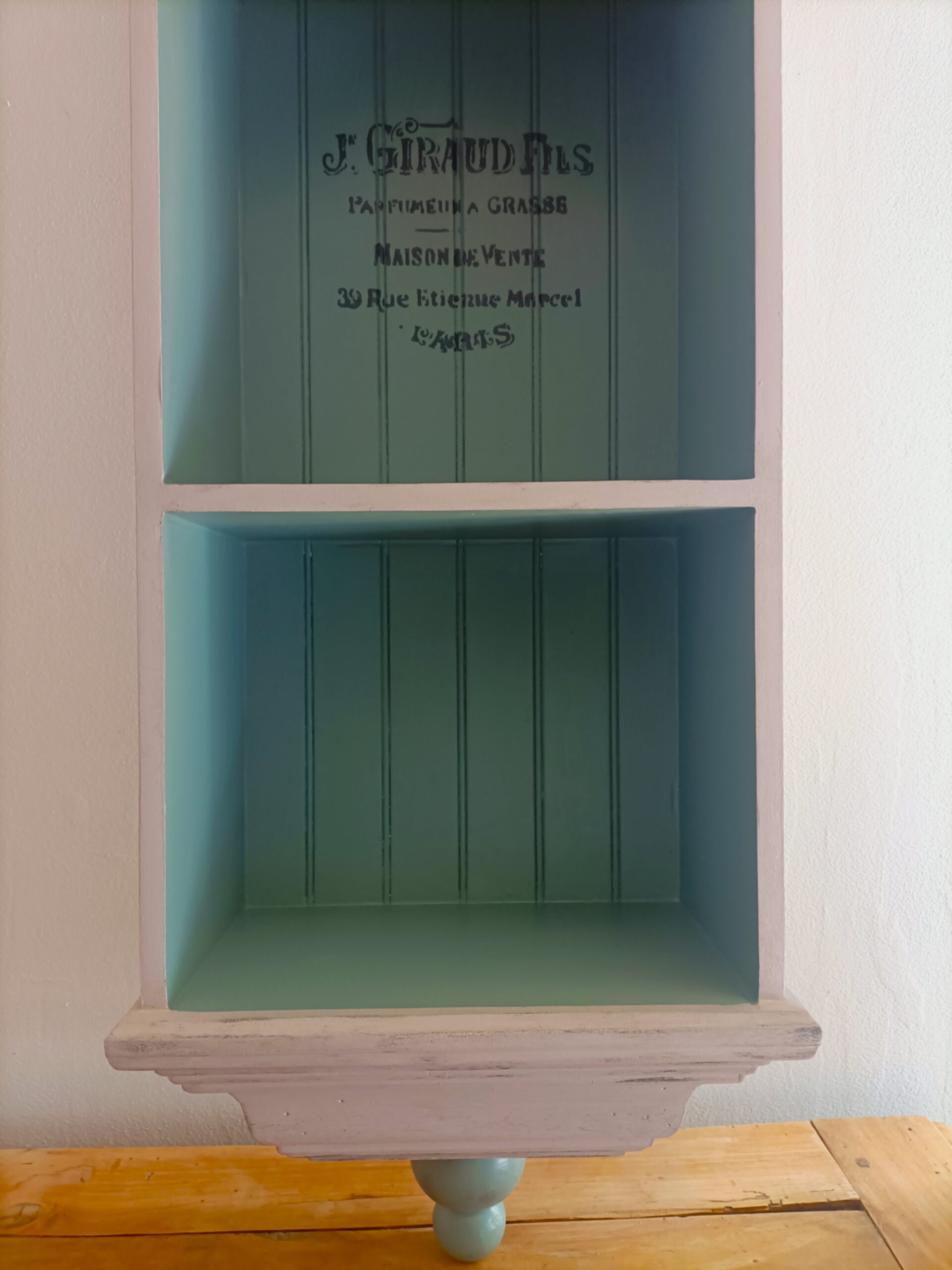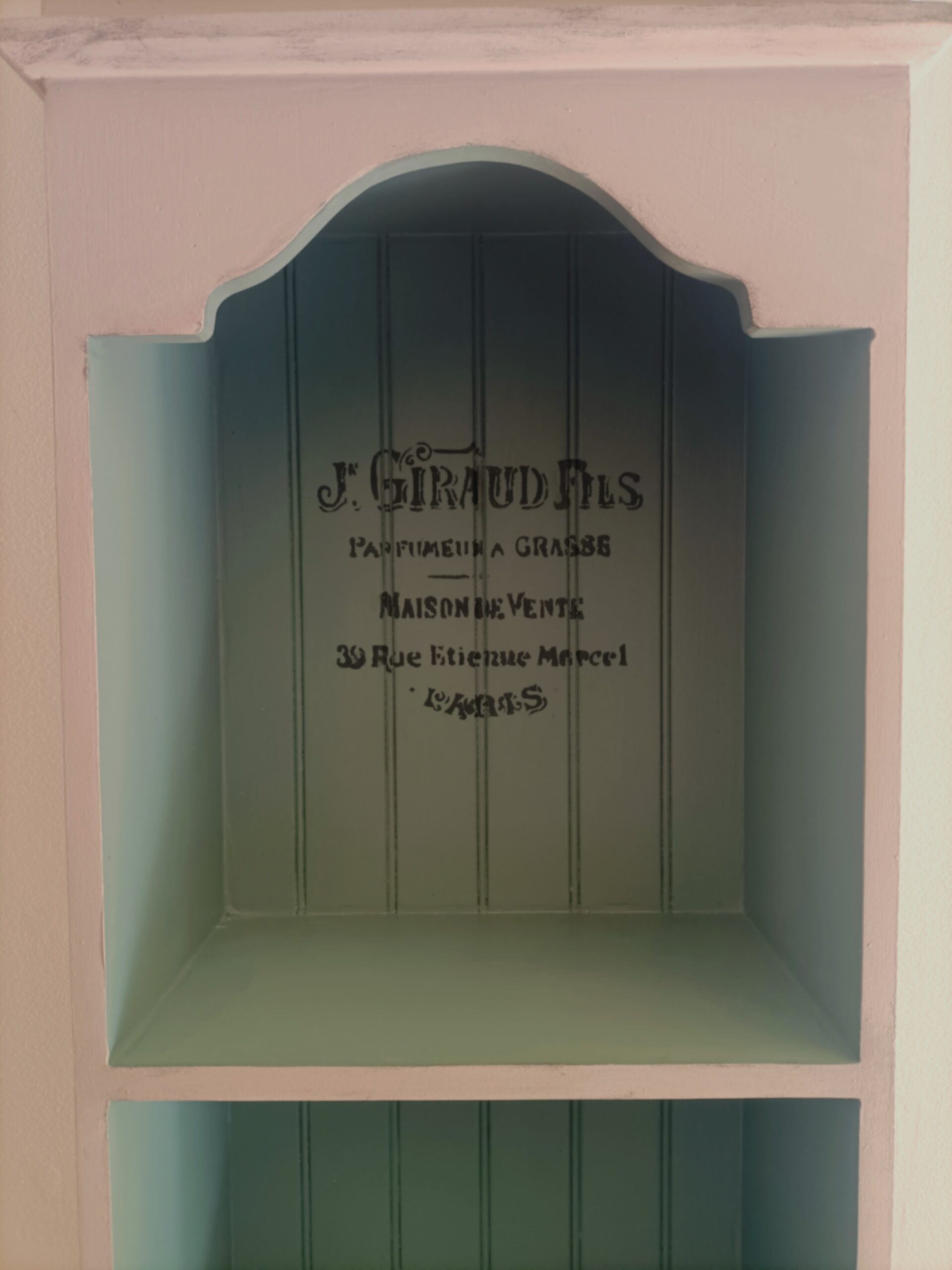• Pochoirs décoratifs vintage sur le centre et protégée par un vernis incolore.