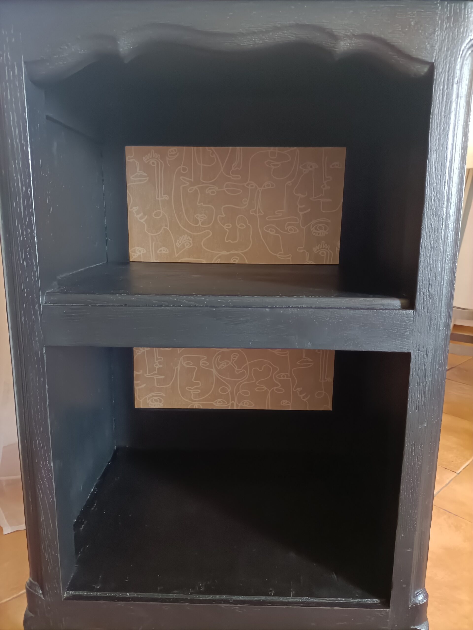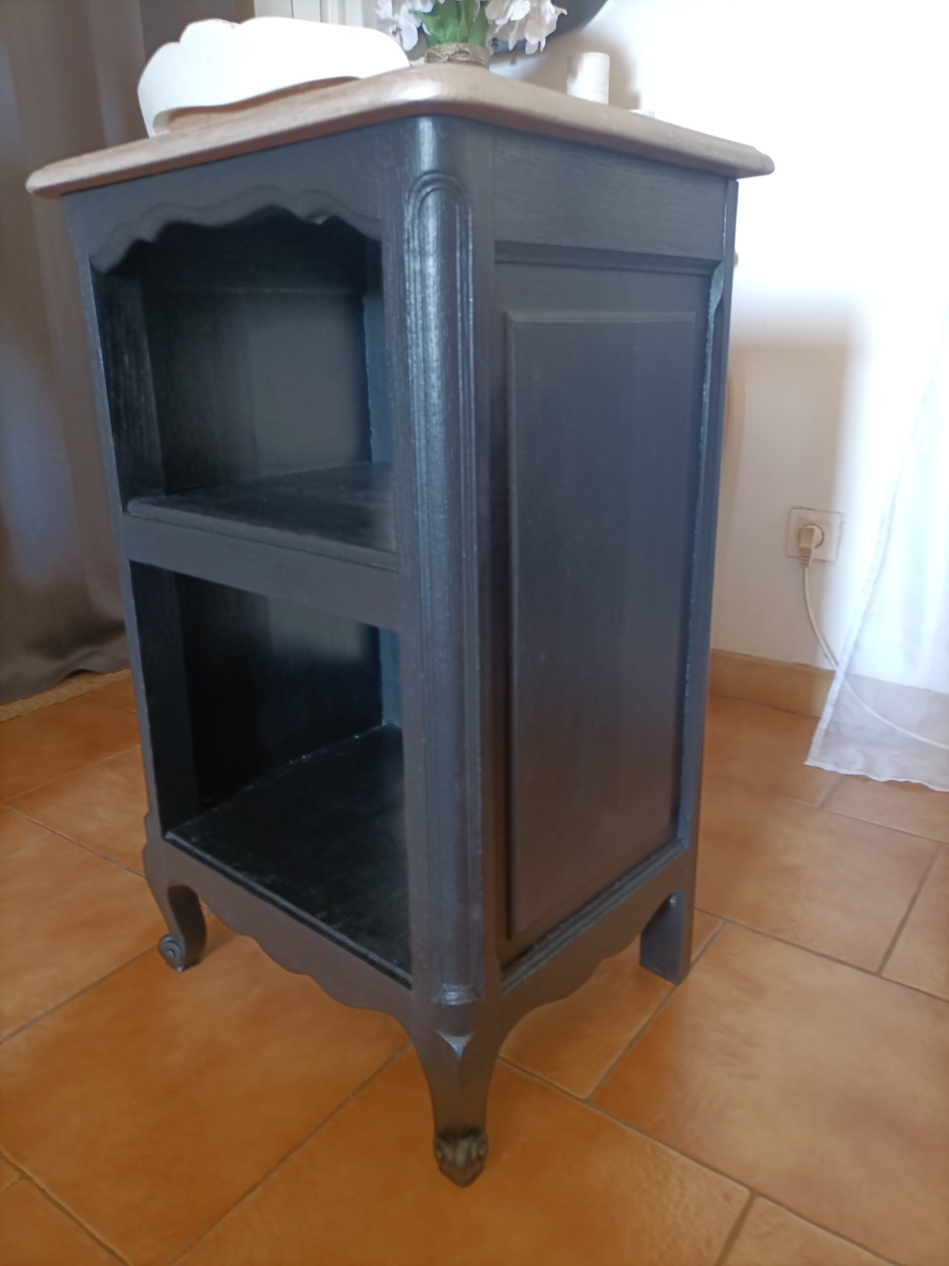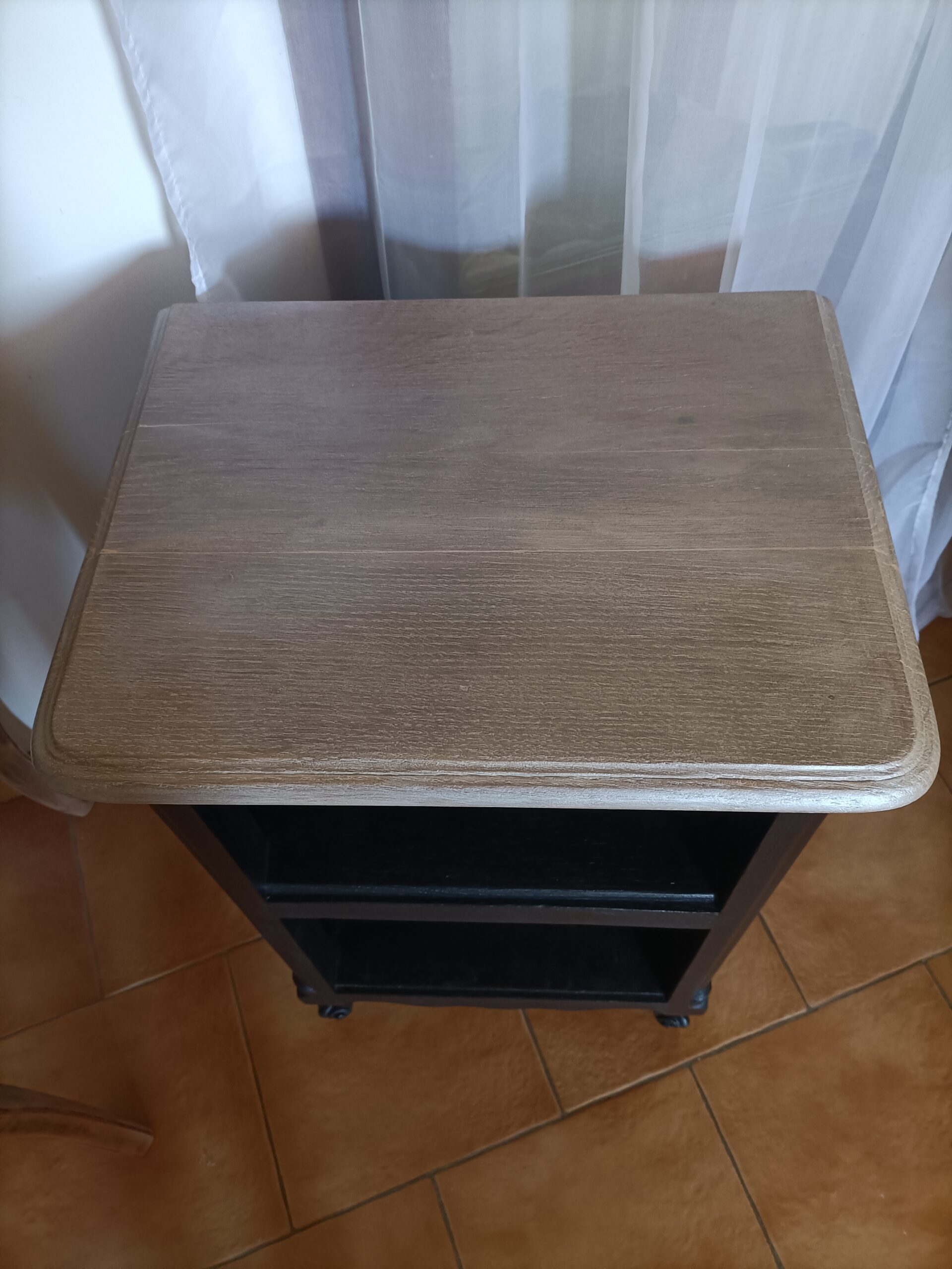 - Peinture noire, plateau vernis naturel appliquée à la main.