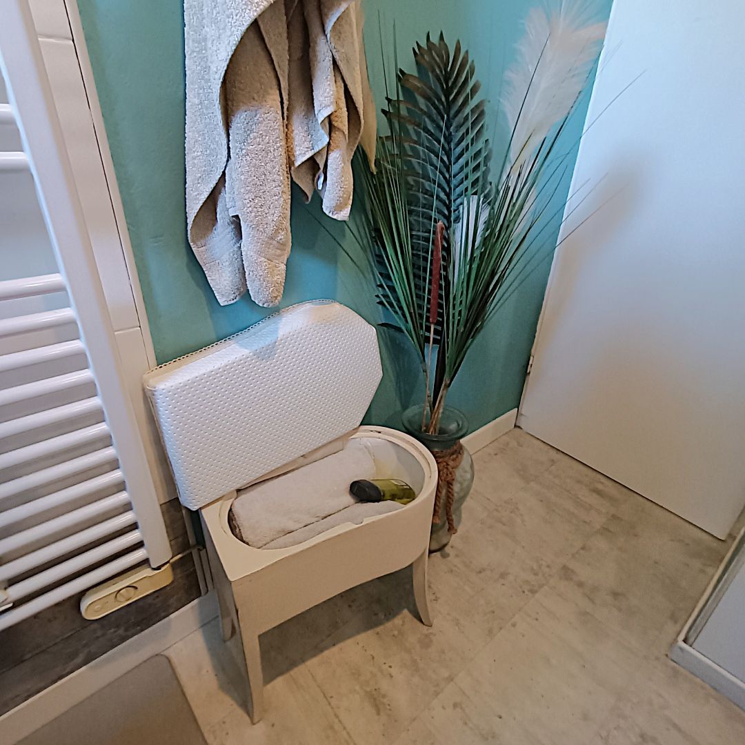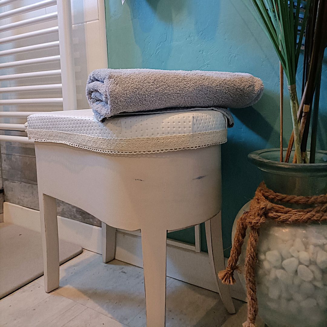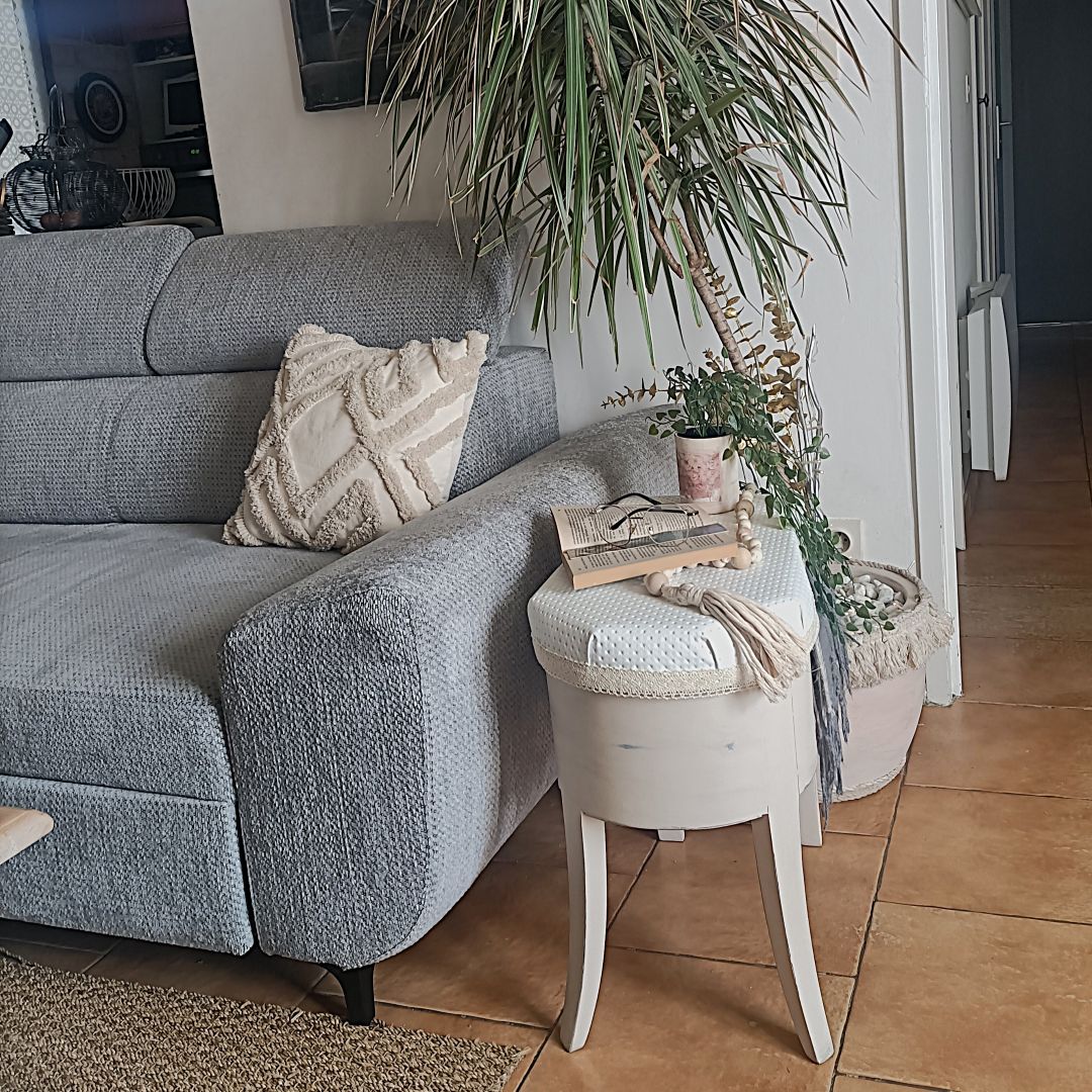 Comment ne pas épater ses amis avec ce tabouret couleur lin et blanc.